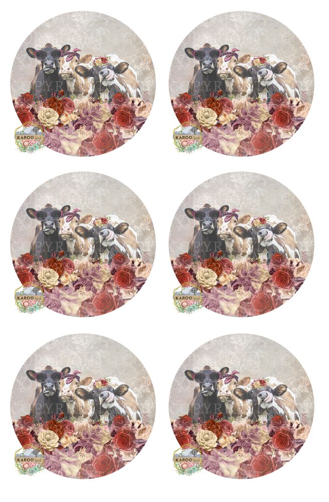 Coasters. A4 Sheet with 6 Prints.